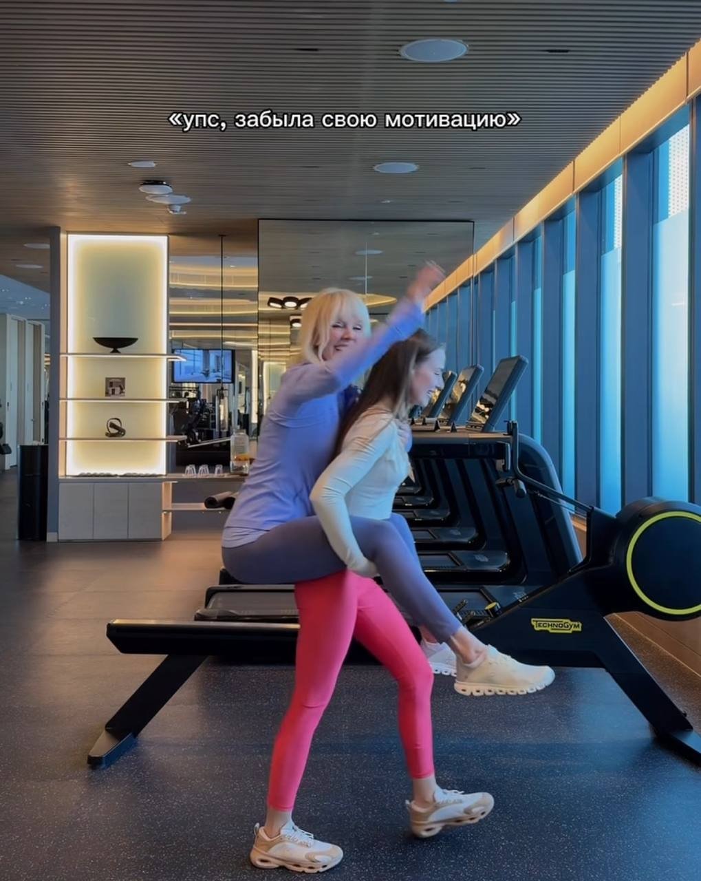 PrimaDonna, 9 февраля. Невестка Валерии сняла очередной ролик в спортзале. В начале видео она идет по тренажерному залу, а потом уже свекровь "висит" на Лиане Шульгиной.