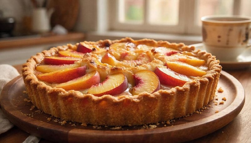 PrimaDonna, 21 февраля. Из обычной банки консервированных персиков, базовых продуктов и получаса времени можно приготовить пирог, который выглядит и вкусно, как десерт из итальянской кофейни. Он нежный, не слишком сладкий и отлично подходит и для гостей, и для семейного чаепития. Пирог состоит из трёх слоёв: песочного теста, заварного крема и фруктовой начинки.