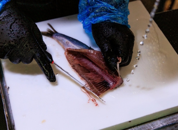 Если предстоит очистить много рыбы, понадобится две ёмкости: