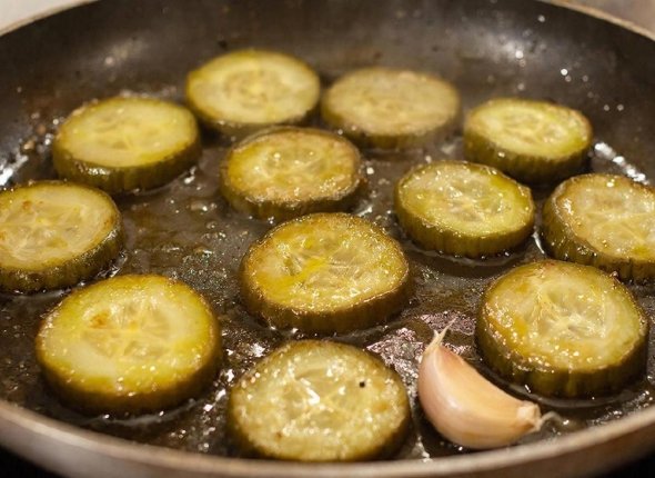5. Вы увидите, что огурцы немного уменьшились в размере. Выложите готовое блюдо на бумажное полотенце, чтобы ненужный жир с них стек.