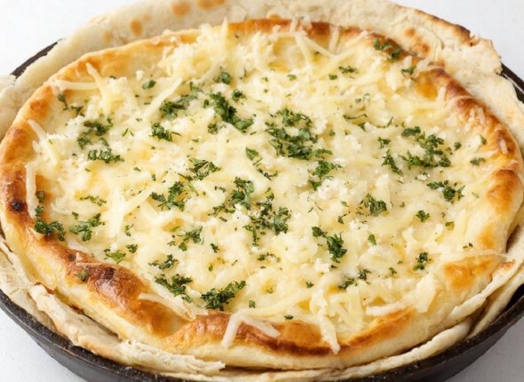 3. Лаваш порежьте на удобные кусочки. На одну половину вылейте немного взбитого яйца, посыпьте сыром и зеленью. Сверху снова накройте второй половиной лаваша.