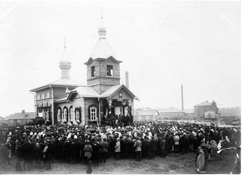 Люди у деревянной церкви, 1990-е.